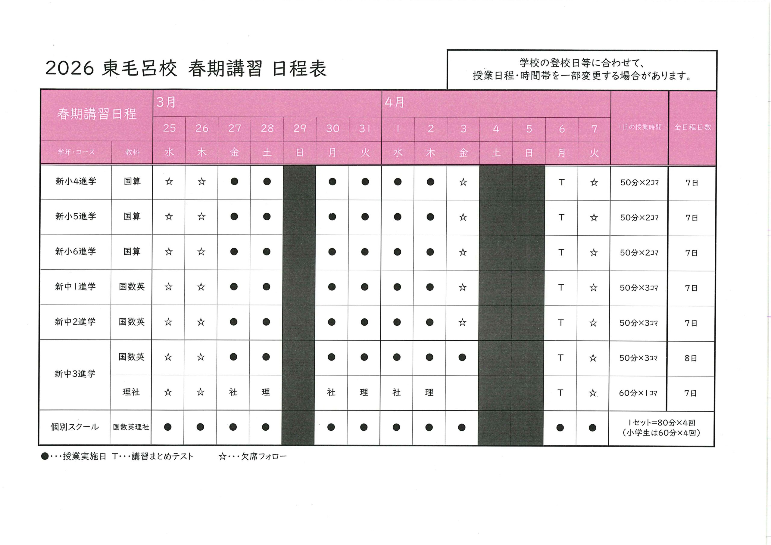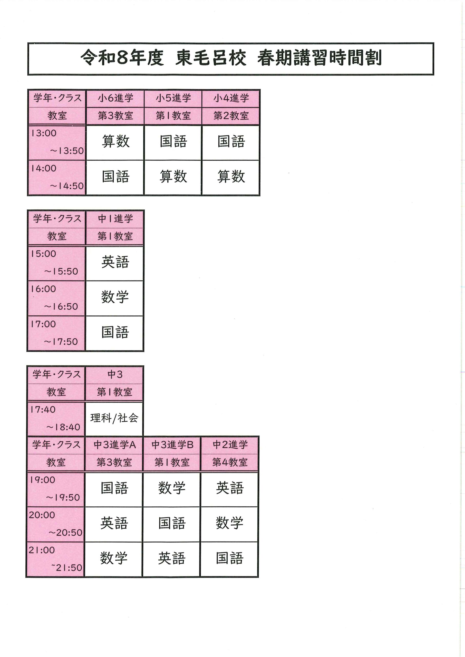 春期講習のご案内【坂戸・若葉・東毛呂】