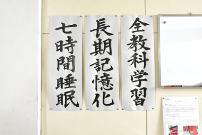 川越南の進路指導部では、「全教科学習」「長期記憶化」「7時間睡眠」という三つの指針を掲げている。