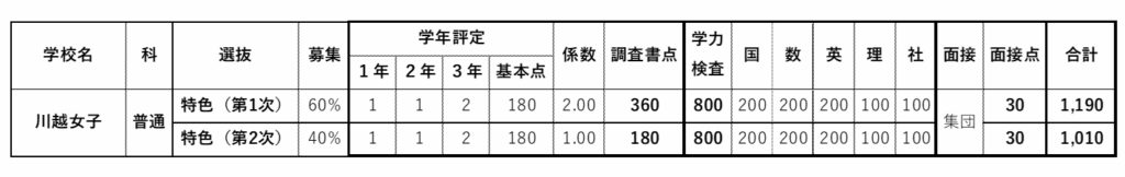 さて、ここで令和9年度入試における川越女子高校の選抜内容についてくわしく見てみたいと思います。
